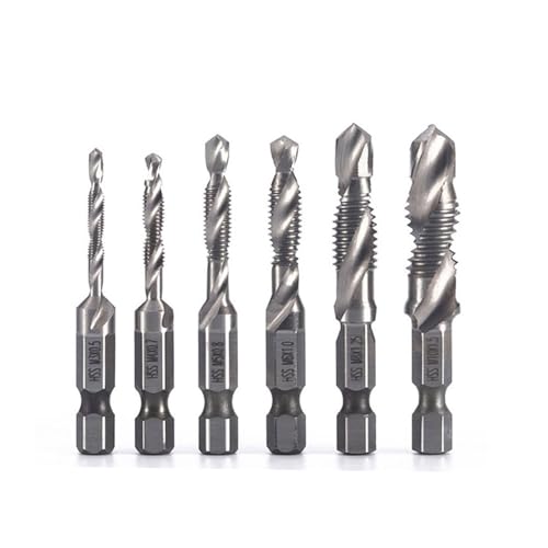 ドリルタップセット(六角軸、6本入り)は、チタン-ゴールド仕上げ。HSS製のスパイラルタップで、M3からM10まで対応。多機能な穴あけとねじ切りに最適なアイテムです。