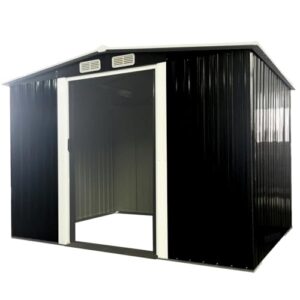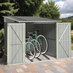 自転車3台収納可能な屋外物置。スチール製で施錠可能、通気口付きで防さび・防水性能も優れています。ガーデニングやアウトドア用品の整理に最適。