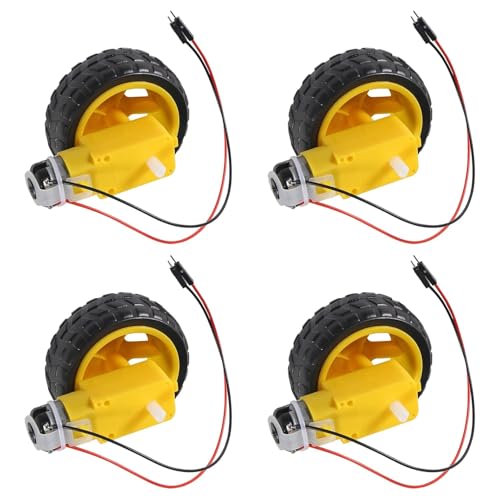 4PCS TTモーターはDC 3-6Vで動作し、ギア比1:48、200RPMの高速回転を提供。DIYスマートカーやロボット製作に最適な二重シャフト設計のタイヤホイールキットです。