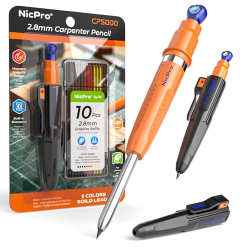 Nicpro 7-in-1 磁気大工鉛筆は、シャープナー、深穴マーカー付きで、建設・木工に最適。マグネット機能で便利なマーキングが可能。