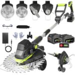 2025年新登場の充電式草刈り機。1台で草刈り、灌木切断、縁刈りが可能。21Vコードレス、ブラシレスモーター搭載。刈刃径230mm、4000mAhバッテリー2個付き。軽量・低騒音設計で安全性抜群。マキタ互換で多機能!