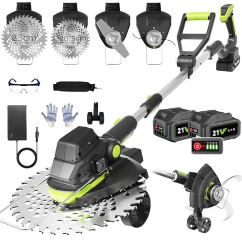 充電式草刈り機【2025年新登場 1台3役 草刈り・灌木切断・縁刈り】21Vコードレス電動草刈機 耐候性ブラシレスモーター 両用補助輪 独自の草巻き防止構造 衝突防止 刈刃径230mm 電量表示 PSE認証 4000mAhバッテリー2個 マキタ互換 替刃3種 8段階調整補助ハンドル 可伸縮 最長140cm 90度調整ヘッド 肩掛けバンド 軽量 低騒音 安全 女性 芝生 雑草 灌木 枝 充電器付きの高価買取