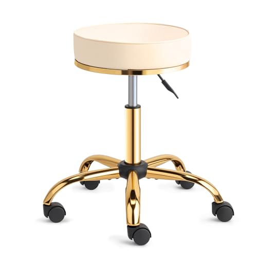OmySalonのキャスター付きローリングスツールは、高さ調節可能で、回転機能を持つビューティー用スツールです。理美容サロンや自宅での使用に最適なラグジュアリーなデザイン。