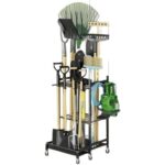 SSZY ガーデンツール収納は、鉄製で耐久性があり、シャベルホルダー付き。滑車で簡単に移動でき、省スペース設計の多機能ラック。車庫や庭での工具整理に最適な収納ソリューションです。