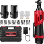 DayPlus コードレス電動スリムラチェットは、3/8インチサイズで40Nmの強力トルクを持ち、小型で扱いやすい。12V大容量バッテリ2個、充電式で可変速、正逆転可。LEDライト、過熱保護、安全ロック搭載、日本語取扱説明書付き。