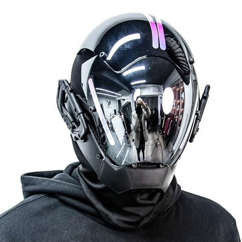 未来的なデザインのパンクヘルメットとSFゴシックマスク。ハロウィーンやホリデーパーティーに最適なコスプレ衣装小道具。大人にぴったりのスタイルで個性的な演出が可能です。