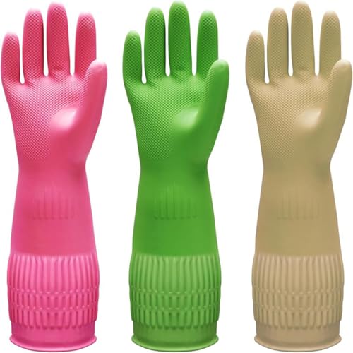 Yavoluyのゴム手袋は、キッチン、洗車、園芸、掃除作業に最適な38cmのロングタイプ。防水で滑り止め付きの3色セット(Lサイズ)です。