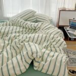 Ladfrolストライプ柄布団カバー3点セット。シングルサイズの掛け布団カバー、敷布団カバー、枕カバー付き。可愛いヴィンテージスタイルで、ウォッシュ&起毛仕上げの寝具4ピース。