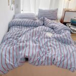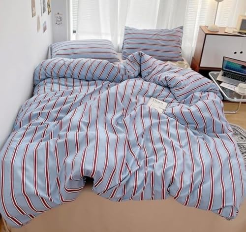 Ladfrolのストライプ柄布団カバー3点セットは、シングルサイズで掛け布団カバー、敷布団カバー、枕カバーが含まれています。可愛いヴィンテージデザインで、起毛加工が施された寝具です。