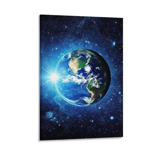 大きな青いビー玉のような地球の美しいポスター。教室や図書館装飾に最適。宇宙や天文学のテーマで、印刷されたキャンバスアート。サイズは8×12インチ(20x30cm)。