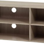 不二貿易のTVラックは幅89×奥行29.5×高さ42cmの木目調デザインで、アッシュグレー色。32型テレビに対応し、コンセント穴も備えています。