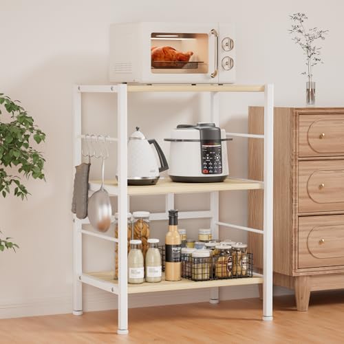 レンジラック(高さ84cm、幅60cm、奥行40cm)は、頑丈な設計で大型レンジにも対応。食器棚としても使用可能で、スライド棚やS字フック4個付き。木目色のオープンラックで、組み立ても簡単です。