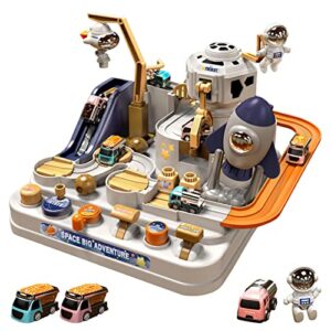 競馬場の車の冒険のおもちゃ – シティレスキュー就学前の乗り物のおもちゃ,教育パズル車のおもちゃ3台のミニカーと1人の宇宙飛行士(4歳の男の子の女の子) dikawe