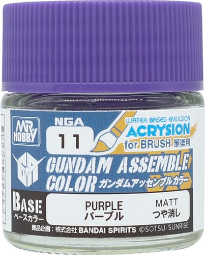 GSI Creosのアクリジョンカラーシリーズ、ガンダムアッセンブルカラー・パープルです。筆塗用のつや消しタイプで、容量は10ml。ホビー向けで、模型製作に最適な塗料です。