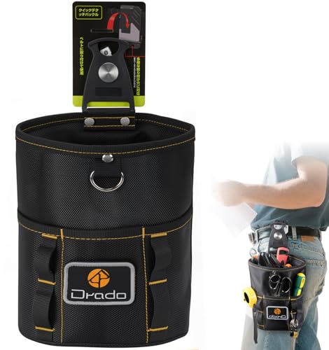 Dradoの腰袋は、電工や大工向けの着脱式工具ホルダーです。1680Dオックスフォード布素材を使用し、バネ式開閉でベルトに装着可能。小物収納にも便利で、釣りやアウトドア作業にも最適です。