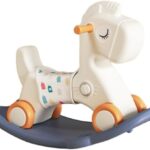 木馬と足蹴り車が兼用の子ども用乗用玩具。押し手付きで方向転換可能。箱入りのオレンジ色、シートクッションや滑り止めカバーも付属。1-5歳向け、リビングやキッズルームで楽しめます。