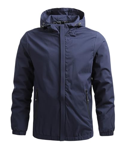 Drsshnxのメンズマウンテンパーカーは、ウインドブレーカーとして薄手で防風・防寒性能を備え、アウトドアや登山、キャンプ、釣りに最適。春秋シーズンにぴったりなネイビーカラーのLサイズです。