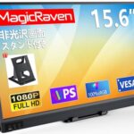MAGICRAVEN 15.6インチモバイルモニターは、1920*1080のIPS液晶パネルを備え、100%広色域で鮮明な画像を提供。ブルーカット機能、ペンホールスタンド、自立スタンド、VESA対応。USB Type-CやミニHDMIにより、SwitchやPS4/PS5、PC、スマホ、Macなどに対応。