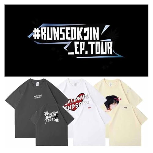ジンの2025年コンサート応援服半袖Tシャツ。夏にぴったりのカジュアルなおしゃれアイテム。通気性のある綿素材で、ベージュの他に3色展開。サイズ165の並行輸入品です。