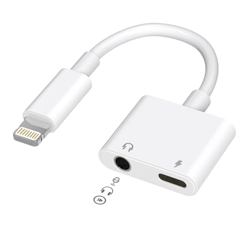 MFi認証のLightning 3.5mmヘッドフォンジャック変換アダプタです。iPhone 7-14やiPadに対応し、通話やHi-Fi音楽、音量調節が可能。2in1充電機能搭載で便利です。