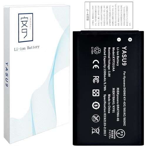 YASU9 for Kyocera DIGNO KY-42C/501KC/502KC バッテリー互換 適用KYF31UAA/KYBAH1/KY01電池 元の容量1500mAh 3.8V 対応Kyocera GRATINA 4G機種 PSE認証 交換修理用 対応DIGNO KY-42C電池【No Tool】の製品情報