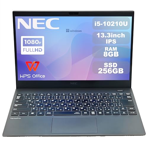 NEC Versapro VG-9は、13.3型FHD液晶、Core i5-10210U、8GBメモリ、256GB SSDを搭載。Wi-Fi6対応、Windows11、WPS Office付属。Type-Cポートあり。