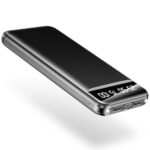 15000mAhの大容量モバイルバッテリー。薄型で軽量、タイプC急速充電対応。LEDライト、残量表示付きで3台同時充電可能。PSE認証済みで旅行やアウトドアに最適。