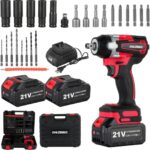 OnlyinNY 21V コードレスインパクトレンチは、最大トルク550N・m、ブラシレスモーター搭載。2バッテリー4.0Ahと高速充電器付き。3300RPMの回転速度、LEDライト装備で、車やDIY作業に最適。
