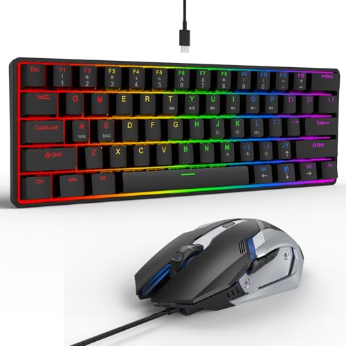 LAMA 60%ゲーミングキーボードとマウスのコンボ、61キーコンパクトメカニカルフィーリングミニキーボードとマウスセット、RGBバックライト、ポータブル有線ゲームセット、PCデスクトップゲーマー用、ブラックの高価買取
