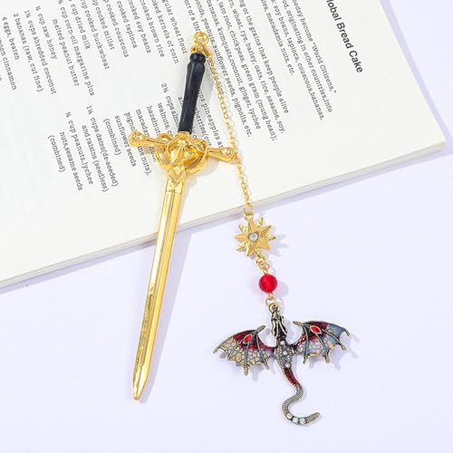 レトロゴールドレッドテラスゴールドソードドラゴンタッセルメタルペンダントブックマーク読書愛好家ギフト誕生日教師リーダーギフト 1個の高価買取