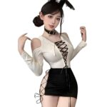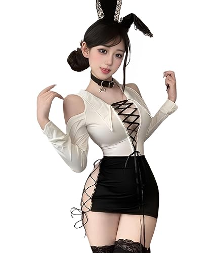 コスプレ レディース ハロウィン セクシー 仮装衣装。白と黒のバニーデザインワンピースドレス。Mサイズでフルセット。特別なイベントやパーティーにぴったりのアイテムです。