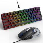 Nsyee 有線メカニカルキーボードとマウスセット、61キーゲーミングキーボードマウス付き、60%コンパクトRGBバックライトUSB Cゲーミングキーボード PC、Windows、Mac、ゲーマー、ブラック