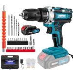 DayPlus 電動ドライバー 電動ドリル 最大45N.m 21V/マキタ対応18Vバッテリー互換 バッテリー1個付き 2段変速0-400RPM/0-1400RPM LEDライト付き 安全ロック 正逆転切替 電動工具セット 電動ドライバー ビット DIY家具組み立て/木工用/家庭用小型/軽量 日本語説明書付き 青の高価買取ITEM