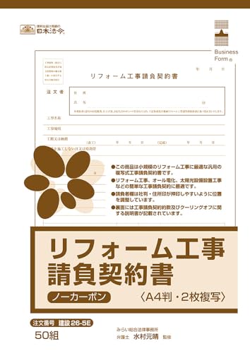 日本法令 リフォーム工事請負契約書(ノーカーボン2枚複写)建設26-5Eの製品情報