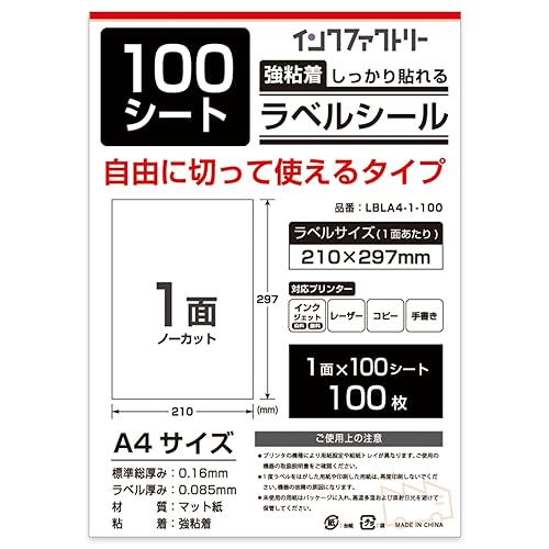 A4ラベルシール 100シートは強粘着性を備え、様々な表面にしっかりと貼りつきます。ラベルは簡単にカットでき、印刷もスムーズ。オフィスや家庭での使用に最適です。