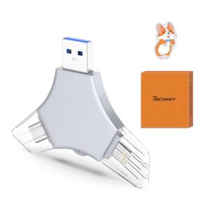 USB 3.0 フラッシュドライブ 64GB iPhone用 3in1 外付けメモリーピクチャーキーパーストレージスティック 写真用 V5.22高速サムドライブ iPhone/iPad/Android/PC用 – ティーカラー