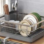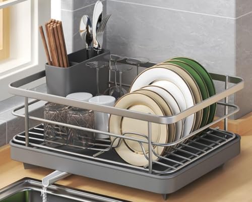 Maryseaの水切りラックは抗菌仕様でコンパクト、トレー付きでスリムなデザイン。縦型シンクに対応し、錆びず省スペースで皿が幅広に乾燥できます。 (グレー) [並行輸入品]