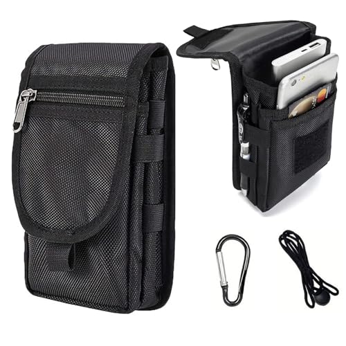 Mirhuaの携帯ポーチは、ブラックのメンズ用縦型で、iPhoneやGalaxyなど4.7-6.9インチのスマホに対応。屋外作業に便利で、多機能・防水仕様です。ウエストに装着可能、小物入れとしても活躍します。