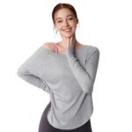 ヨガウェア トップス スポーツ レディース用のゆったりした長袖ラウンドネックTシャツ。ジムやピラティスに最適なロングTシャツ。カラーはグレー、サイズはLとXLが選べます。