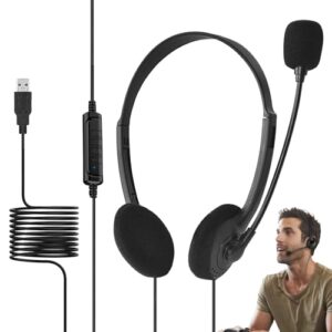 マイク付きUSBゲームヘッドセット | オーバーイヤーヘッドホン 安定した有線USBゲームヘッドセット 調節可能なボリュームコントロール付き PC/自宅/ゲーム用