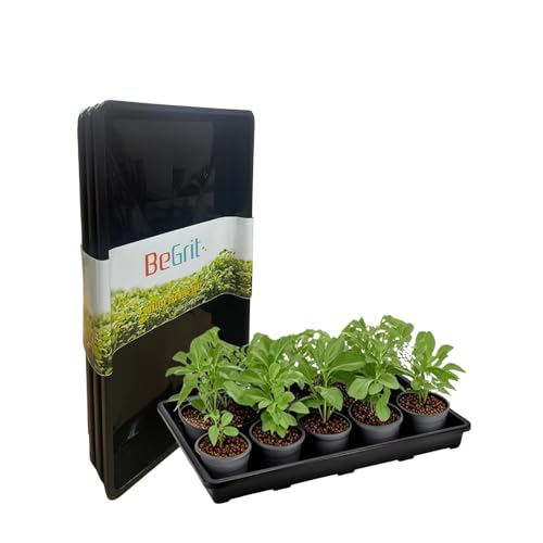 BeGrit育苗トレーは、44×30×4.5cmのサイズで、黒のポリプロピレン素材を使用した丈夫な設計です。3枚セットで、室内外のガーデニングや家庭菜園に最適。苗ポット対応で多用途に使えます。