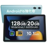 Android 16強化版タブレット10インチWi-Fiモデル128GB・20GBメモリ・2TB拡張可能。8コアCPU、GPS、Widevine L1対応。6600mAhバッテリー、顔認識、画面分割機能。児童守護機能搭載。一年保証付き。