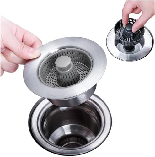 / 排水口 ゴミ受け ポップアップ式 キッチン シンク 排水溝 ごみ受け ステンレス 防臭 防虫 水止め機能付き プレート ストレーナー 適用口径: 7~10.8cm 家庭用プレス水ブロックフィルターバスケット洗浄 ボウルの中の水 (1個,ステンレス鋼)
