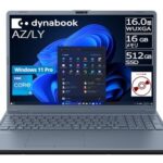dynabook ノートパソコン AZ/LYは、Windows 11 Proを搭載し、16.0型ディスプレイ、第13世代Core i5プロセッサ、SSDを搭載。アッシュブルー色のWebモデルです。