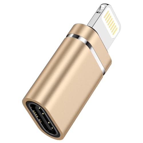 Haoano USB-C to Lightning変換アダプタは、480Mbpsのデータ転送と10Wの高速充電をサポート。軽量で小型、アルミ合金外装の金色デザイン。iPhone14/13/12/11/SE/iPadなどに対応。