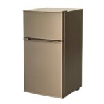 simplus 2ドア冷蔵庫90Lは、一人暮らしやオフィスに最適。省エネ設計で右開き、シンプルなデザイン。温度調整可能で静音性能も優れています。ゴールドのカラーも魅力。
