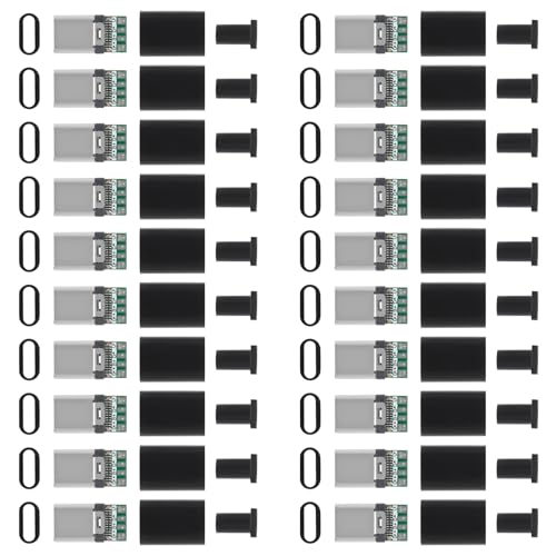 20セットのUSB 3.1タイプCコネクタ、24ピン男性プラグ。DIY用はんだ線アダプター、データラインインターフェースソケット(ブラック)。