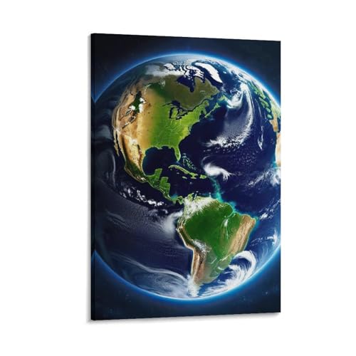地球をテーマにした20×30インチの印刷キャンバスアート。教室や図書館、科学教室の飾りに最適で、宇宙から見た美しい地球のデザインが魅力的です。