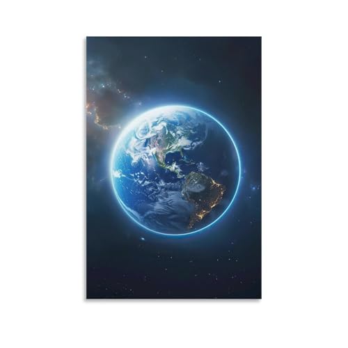 地球をテーマにした美しい油彩画。教室や図書館、バスルーム、寝室の装飾に最適。宇宙や天文学の魅力を引き立てる20×30インチサイズのウォールアート。