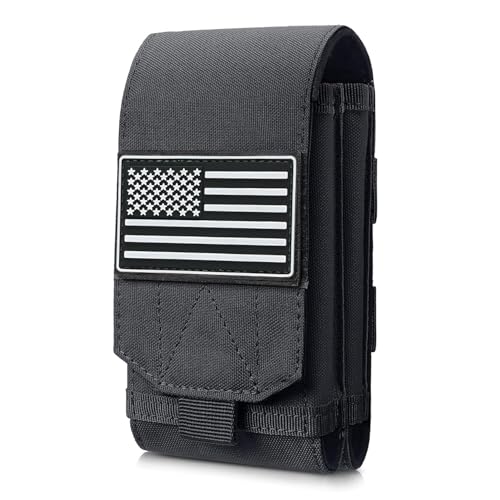 Tactical Molle デュアル携帯電話ホルダーは、ユーティリティEDCポーチで、米国国旗パッチが付いています。ブラックカラーで、耐久性に優れ、日常使いやアウトドアに最適です。